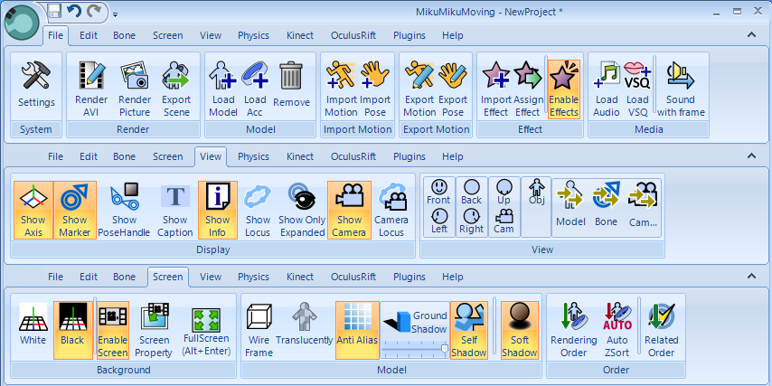 Es importante que antes de renderizar el video tengamos el fondo en negro si nuestra idea es proyectarlo en alguna superficie semitransparente. Esto se logra en el menú «Screen», seleccionando el botón «Black». Para renderizar deberemos apretar el botón «Render AVI» que se encuentra en el menú «File».