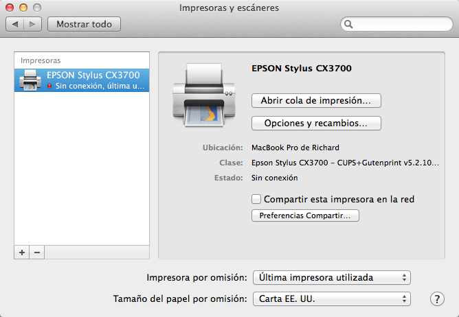 Pero el computador no siempre cuenta con los controladores. Si la impresora es muy nueva, te ofrece bajarlos en el momento. Pero, ¿que ocurre si nunca hubieron controladores? Pues usamos los del proyecto GutenPrint.