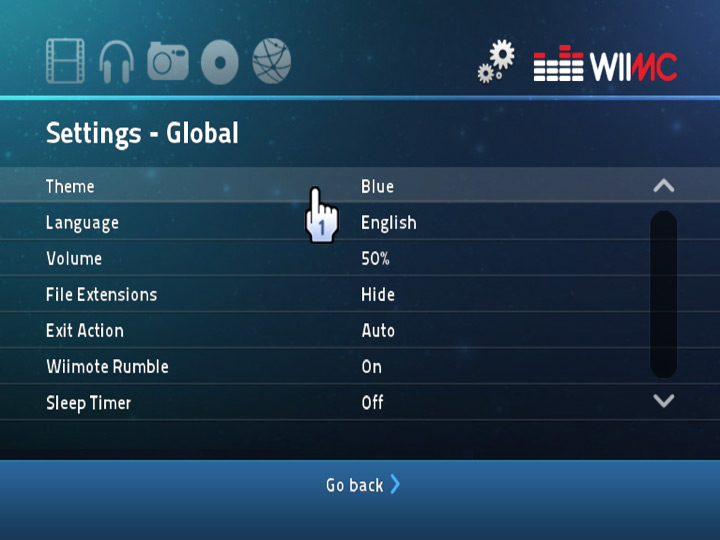 Wii Media Center permite convertir tu consola en un centro multimedia. Esta aplicación basada en MPlayer fue desarrollada por Tantric y rodries para facilitar la carga de videos y audio en la consola desde un dispositivo USB, DVD, tarjeta SD o en red local. Para su funcionamiento hace uso del IOS 58, prescindiendo de cIOS, toda una novedad en su momento.